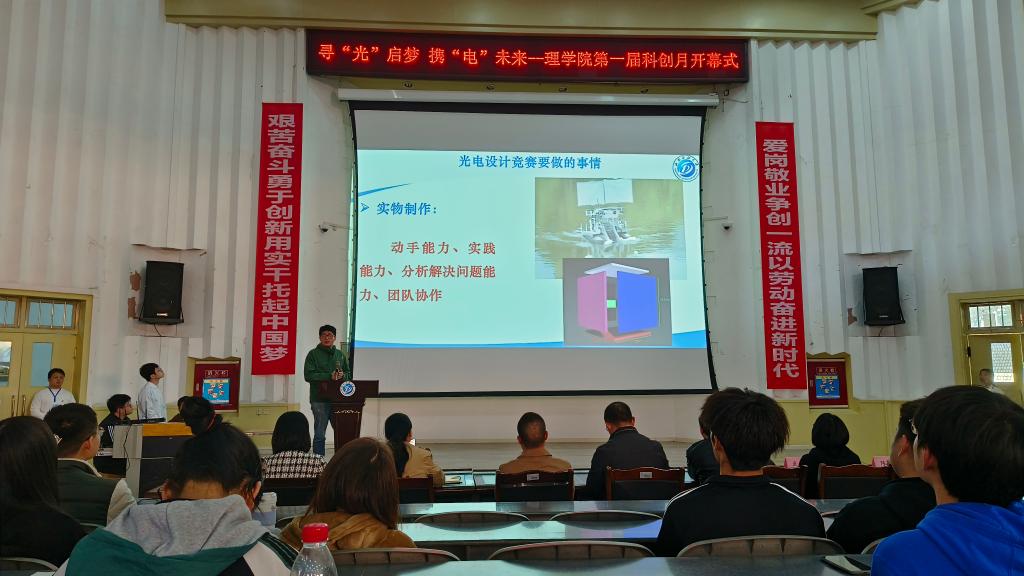 3月16日,理学院在南充校区第四教学楼多功能学术报告厅举行首届“科创月”活动开幕式,鼓励全院学生积极参加科技创新活动。