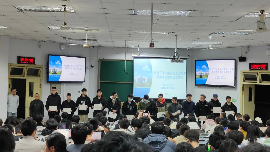 税正伟、侯俊勇和武新慧分别为在2022年全国大学生光电设计竞赛中荣获国赛荣誉的4支学生代表队、西南赛区荣誉的13支学生代表队颁发了荣誉证书。