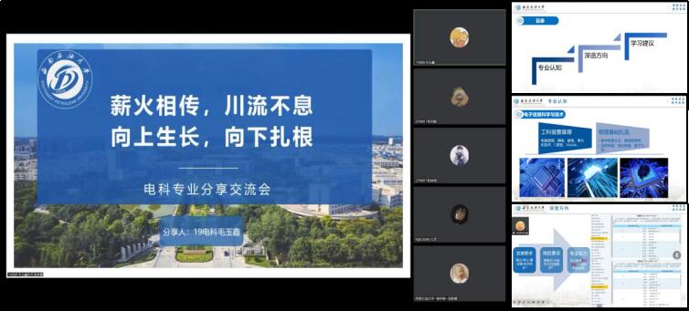 为什么要保研?怎样准备考研?如何高效利用时间?毛玉鑫围绕专业认知、就业前景、深造方向、学习规划等方面内容,介绍了学习经历,分享了学习经验。他说保研择校要立足个人未来成长和发展,综合考虑个人需求与求学高校所在地区的经济社会发展、学校的影响力和专业排名。要提前准备好个人简历,认真分析,做好规划,做到精准发力。谢佳龙以电磁场和微波技术方向的课程脉络为例,分析专业知识间的联系,介绍了推免和考研涉及的核心专业课程,并推荐了考研复习资料。谢佳龙还就保研相关注意事项、面试技巧和院校特色等内容,提出了建议。谢佳龙说,学弟学妹要统筹做好夏令营推免申请和考研复习,把握好学习节奏,找准复习重点,力争取得最佳的复习效果。陈海洋分析了考研复习期间考生存在的焦虑、浮躁等心理,建议大家要培养考研信心,坚定考研决心,明确意向院校和专业,尽早熟悉考研相关要求和报名相关流程,认真复习备考、心无旁骛。