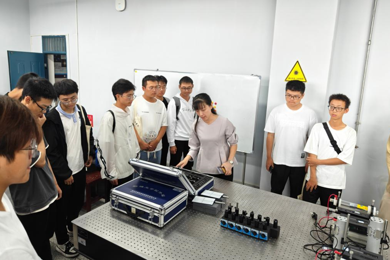 本次活动将学院2023级的200余名新生分为10组,每组20人左右,以滚动参观的模式同步进行。同学们分别参观了应用光学实验室、物理光学实验室等学院在南充校区的13个实验室。老师们从实验项目、竞赛项目、创新拓展等为新生进行了介绍。学长们则分享了在实验室的收获和感受,带领参观了获奖作品,拓宽了新生们的视野。