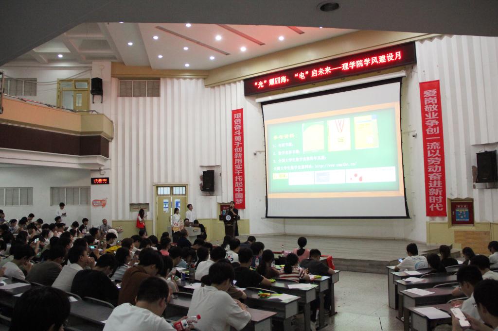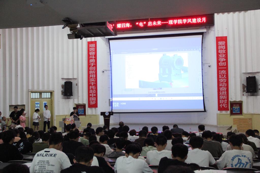 杨秋菊结合电路原理、模拟电子技术、数字电子技术三门课程,为同学们讲解了专业课程的学习方法,鼓励同学们多探索、多实践,将学科竞赛融入专业知识学习。理学院2024-2025年度电磁虚拟仿真团队、大学数学竞赛团队等6个师生团队的指导老师依次上台做团队介绍,号召同学们主动走出寝室,走进实验室,在实验操作过程中提高动手能力,夯实专业基础。