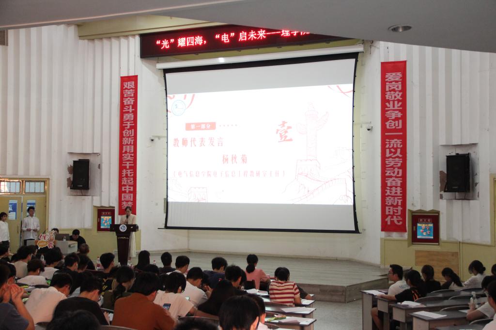 为加强学风建设,营造良好的校园学习氛围,9月26日下午,理学院在第四教学楼4317教室举行“光”耀四海,“电”启未来学风建设月开幕式。理学院副院长税正伟,电气信息学院优秀教师代表杨秋菊,理学院各教研室、学生工作办公室负责人参加活动。