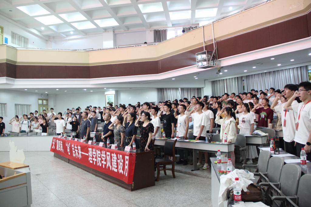 网络工程2022级陈明明和电子信息工程2021级王青浩作为学生代表分别从竞赛前期准备、比赛具体要求等方面做了竞赛经验分享。他们欢迎同学们加入学科竞赛团队,一起学习,一起进步。最后,理学院团学组织学生代表胡孝炜带领全体同学集体宣誓,共创优良学风,争做优秀青年。