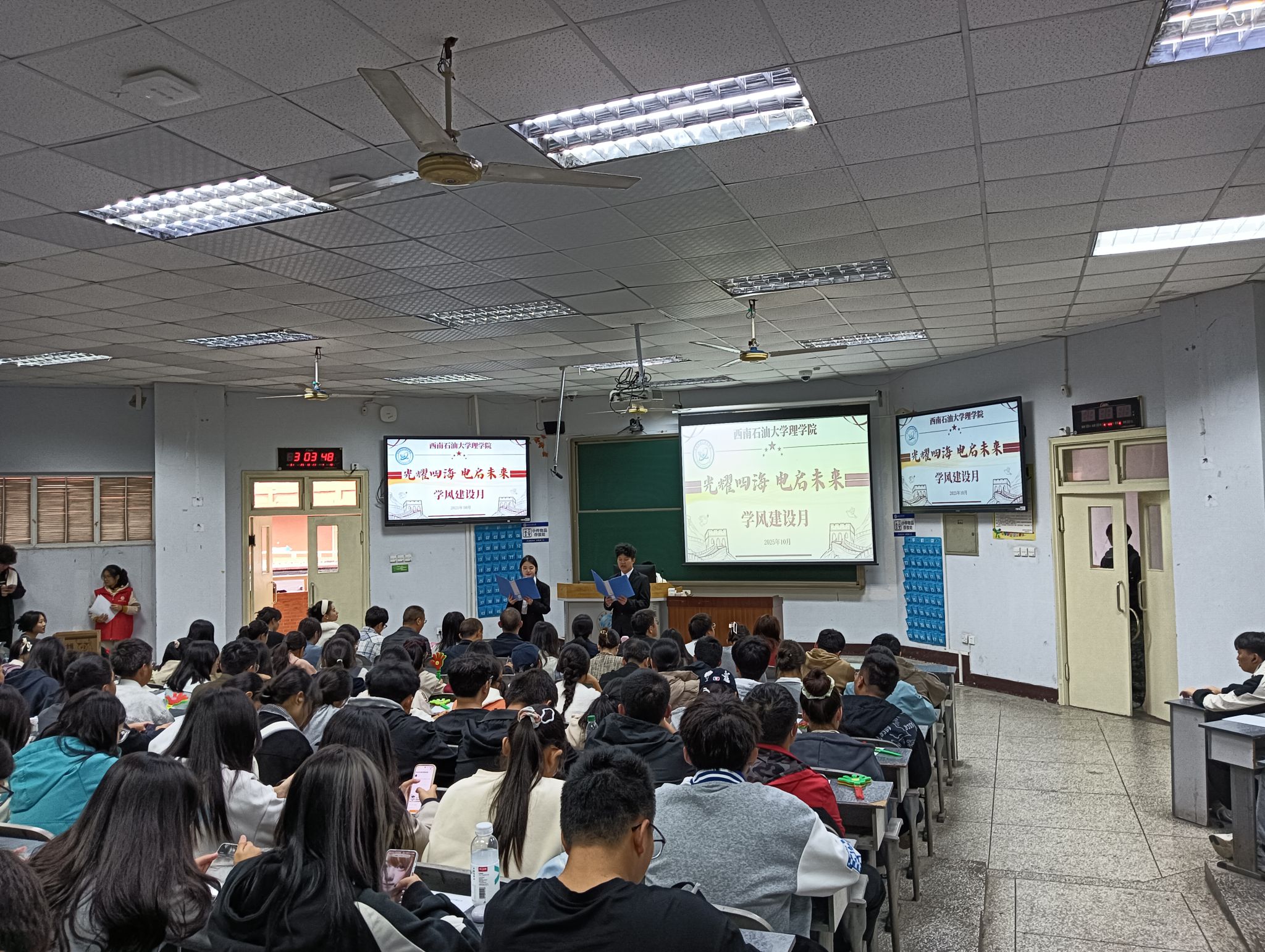 为加强学风建设,10月23日下午,理学院在第四教学楼4518教室举办了以“光耀四海·电启未来”为主题的学风建设月开幕式。理学院副院长税正伟,理学院各教研室、学生工作办公室负责人和教师代表参加此次活动。