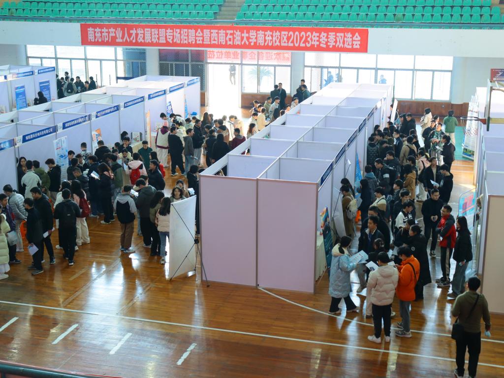 为促进毕业生高质量充分就业,12月8日,南充市产业人才发展联盟专场招聘会暨西南石油大学南充校区2023年冬季双选会在校区体育馆举行。