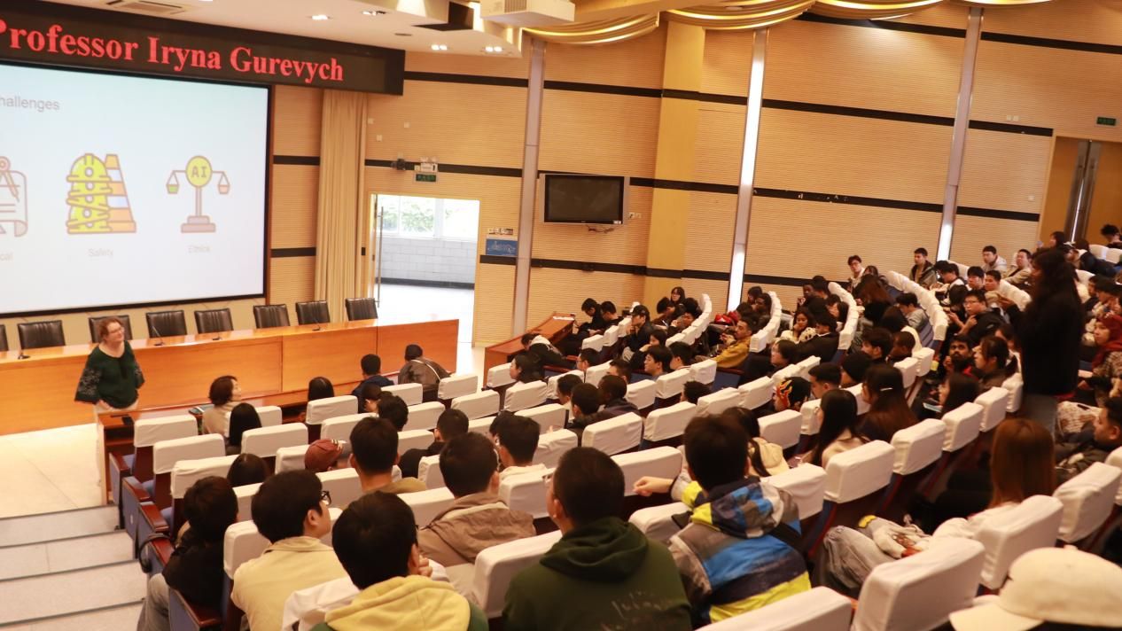 会谈结束后,Iryna Gurevych教授为师生作了学术报告,分享了“AI for Science”的研究现状与未来趋势,详细介绍了她所领导的研究团队在大模型赋能科学研究范式变革方面的工作。报告内容详实、案例生动,师生们表现出浓厚兴趣,围绕人工智能的能力边界、大模型安全、跨学科应用、AI for Science的学术伦理等热点问题,与Iryna Gurevych教授展开了深入交流,对大模型在跨学科融合中的潜力有了更深刻的认识,也充分展现了师生们对前沿科技的敏锐洞察和学术热情。