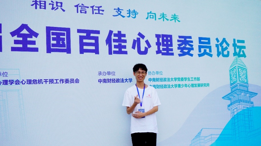 近日,由中国心理学会心理危机干预工作委员会主办的第十八届全国高校心理委员工作研讨会暨朋辈辅导论坛、第六届全国百佳心理委员论坛举行,会上发布了第六届全国高校百佳心理委员暨百佳心理委员提名奖名单,我校电信院2021级通信工程本科生李潇从全国340名高校心理委员中脱颖而出,获第六届“全国百佳心理委员”称号。