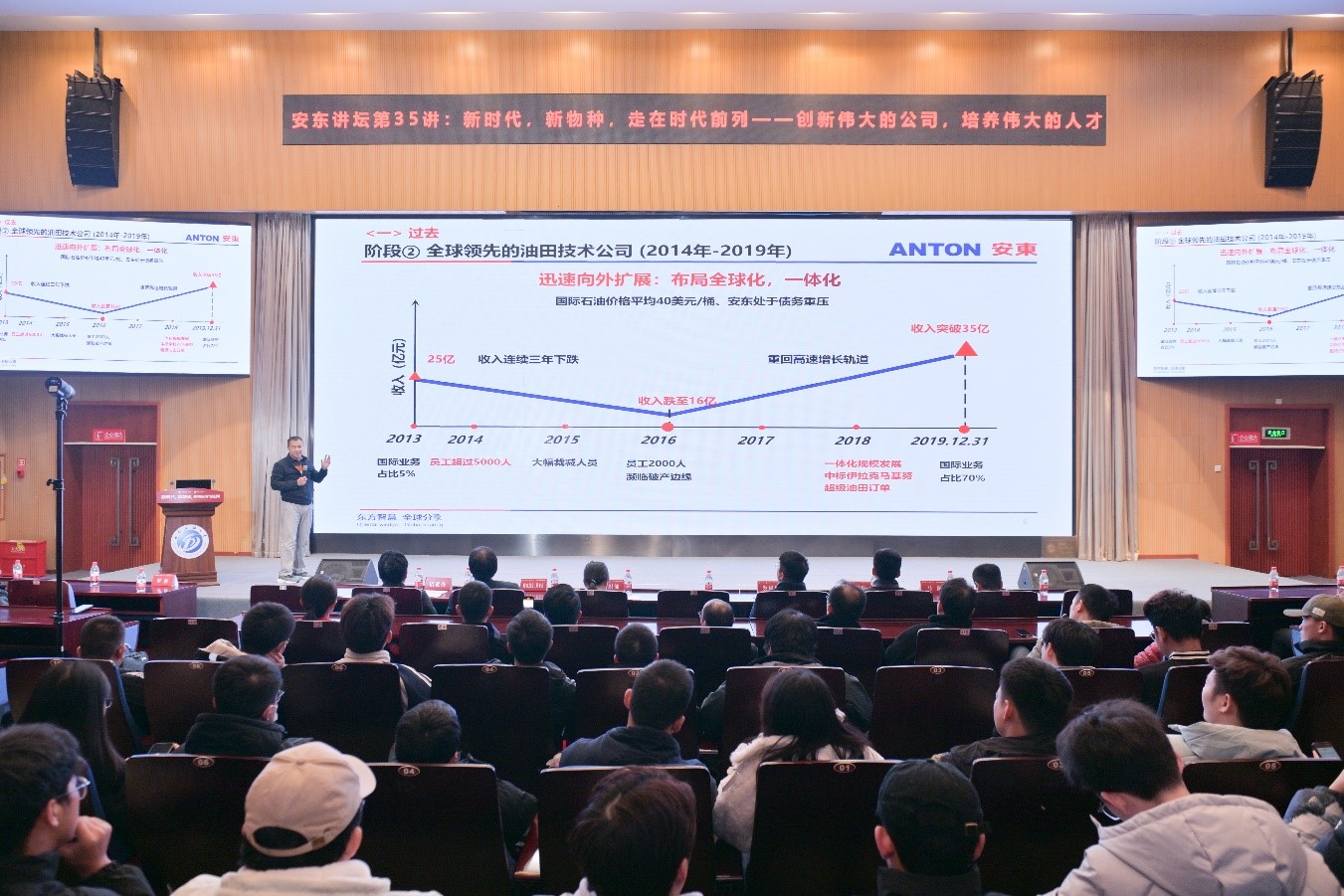 “安东讲坛”在安东油田服务集团的赞助支持下,已成功举办35讲,曾邀请尼格买提、马伯庸等名家大师来校讲座,致力推动优秀企业文化、高端学术、高雅艺术进校园。