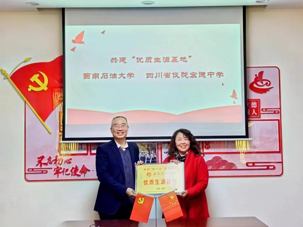 会上,衡彤向仪陇中学、宏德中学、仪陇二中、马鞍中学授 “西南石油大学优质生源基地”牌。