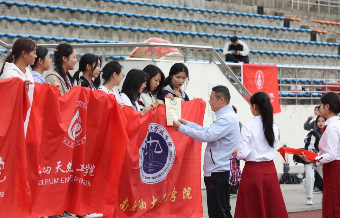 经过一天的激烈角逐,石工院、化工院、机电院分获女子甲组团体总分冠亚季军,石工院、地科院、土测院分获男子甲组团体总分冠亚季军。体育院2024级3班、2班分获乙组团体第一、二名。