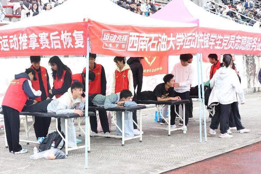 体育学院运动先锋学生党员为运动员提供推拿志愿服务
