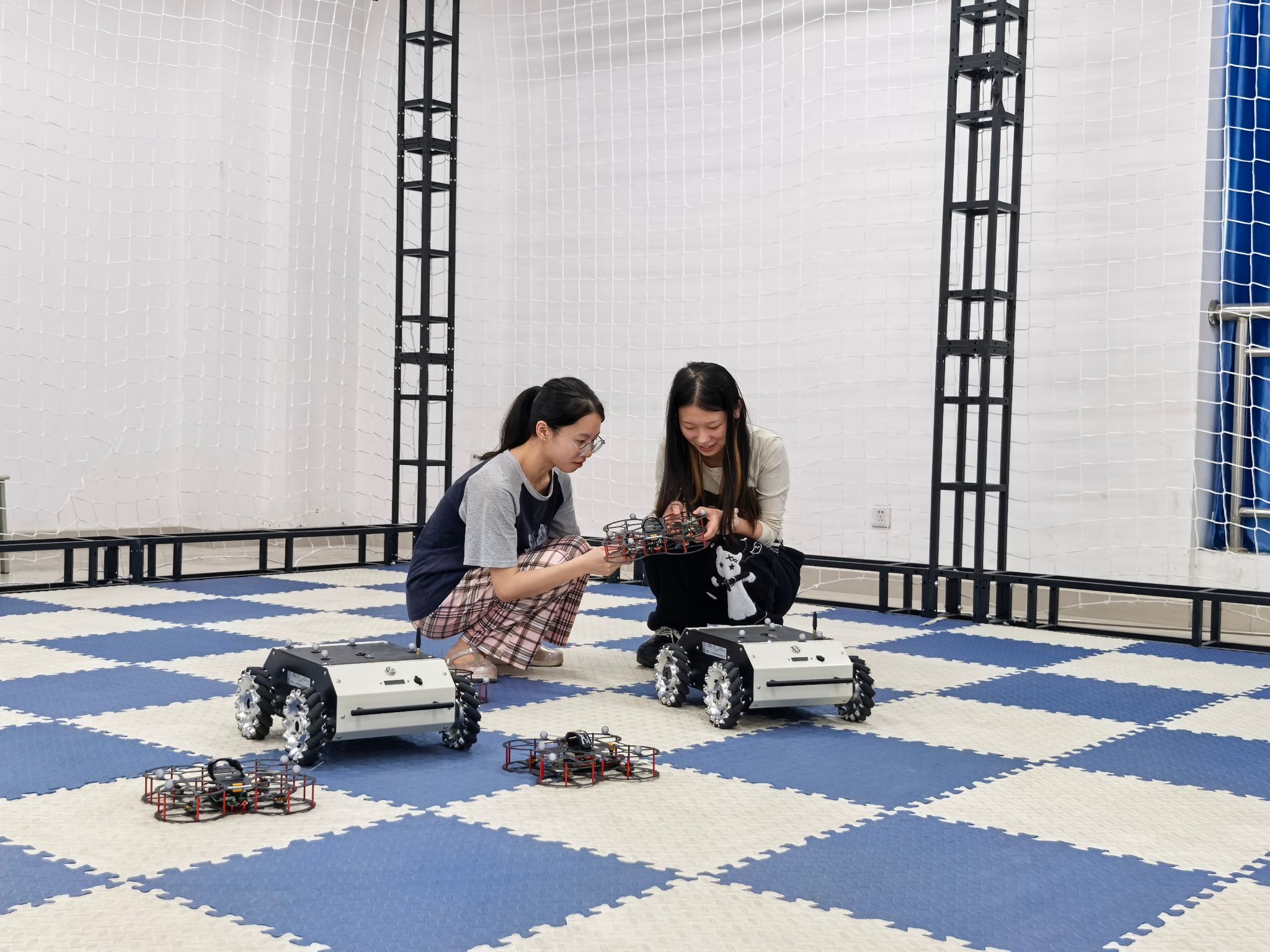 理学院组织新生参观“陆空智能协同”实验室,沉浸式体验无人机与无人小车组成的陆空多智能体工作模式,了解专业前沿。