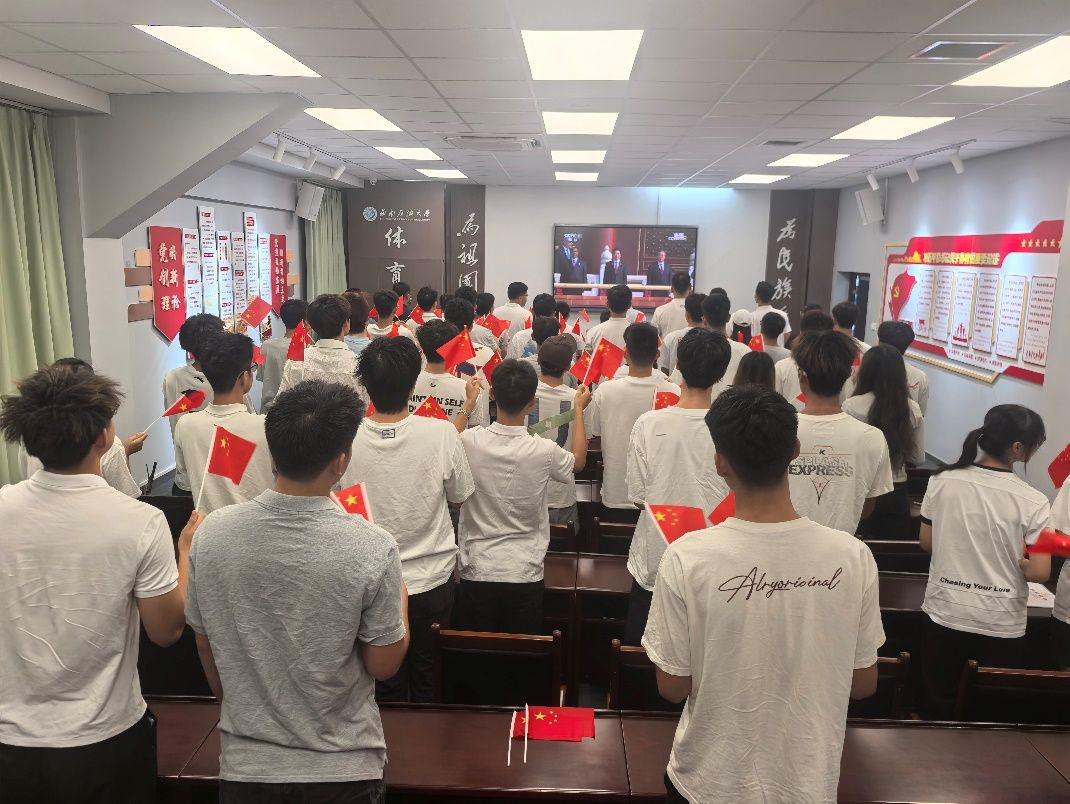 体育学院组织新生观看抗战胜利80周年阅兵式,深入学习习近平总书记重要讲话精神,通过专题研讨、心得分享等形式,激发新生爱国热情、坚定理想信念、凝聚奋进力量。