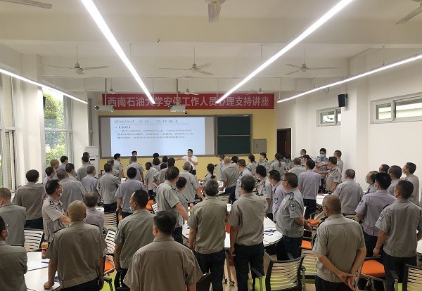 为进一步做实做细保安人员心理健康教育工作,培养正确的情绪管理方法,有效缓解安保工作人员因疫情带来长期艰巨任务而导致的工作压力及身心压力。6月12日,保卫处邀请学校心理发展与服务中心余强老师,在明理楼A102室为安保工作人员开展了“舞动压力,放飞心情”的主题心理培训。