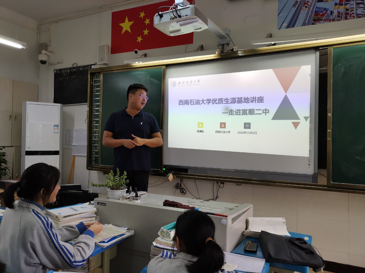 10月10日下午,机电工程学院教师龚清能前往高中母校富顺第二中学校开展职业生涯规划讲座,旨在帮助同学们明确高中生生涯规划的目的和意义,提高同学们的生涯规划意识。