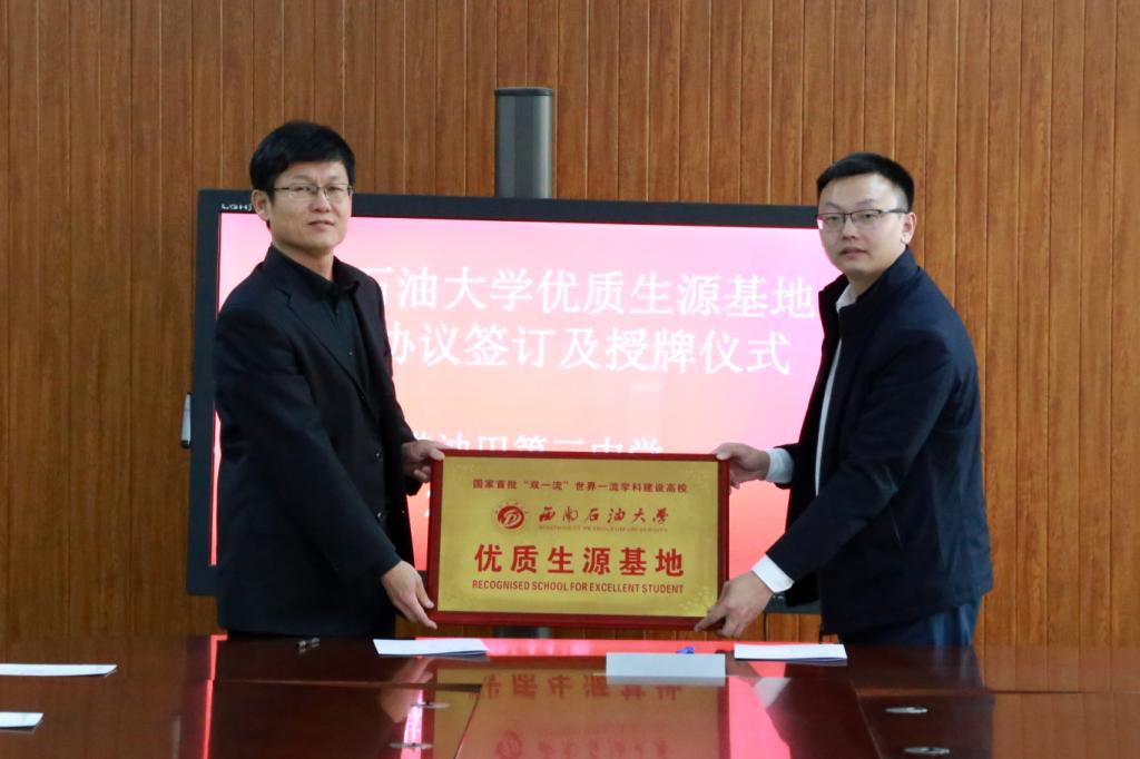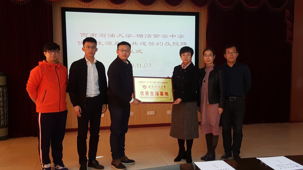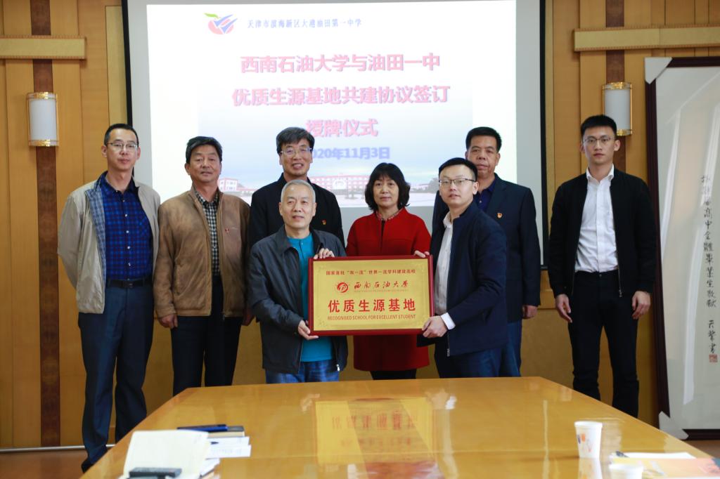11月3日,招生就业处联合学校天津市招生宣传片区负责学院石油与天然气工程学院赴天津,和学校重点生源中学天津市塘沽第一中学、天津市塘沽紫云中学、天津市大港油田第一中学 、天津市大港油田第三中学进行走访交流,并与4所学校签署了优质生源基地共建协议并授牌。同时,招生就业处还向4所中学赠与了“学生职业测评与规划系统”资源,以支持中学开展生涯教育工作。