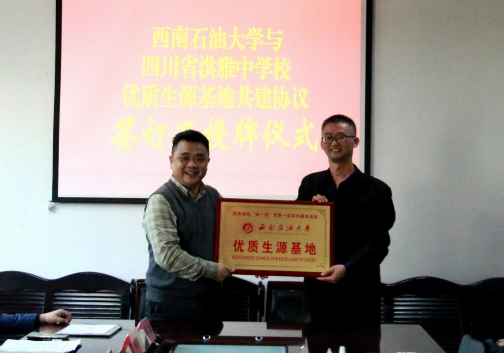 11月18日-19日,招生就业处联合眉山市招生宣传片区负责单位理学院赴四川省洪雅中学校、四川省丹棱中学校、四川省眉山中学校进行了走访调研。调研组与3所学校签署了优质生源基地共建协议,向3所中学授予“西南石油大学优质生源基地”牌。同时,招生就业处向3所中学赠送了“学生职业测评与规划系统”资源,用以支持中学开展生涯教育工作。