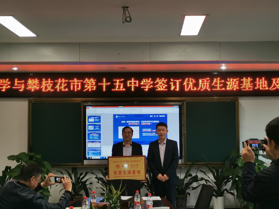 11月26日-27日,招生就业处联合攀枝花市招生宣传片区负责单位新能源与材料学院赴四川省米易中学校、攀枝花市大河中学校、攀枝花市第十五中学进行了走访调研。调研组与3所学校签署了优质生源基地共建协议,向3所中学授予“西南石油大学优质生源基地”牌。同时,招生就业处向3所中学赠送了“学生职业测评与规划系统”资源,用以支持中学开展生涯教育工作。