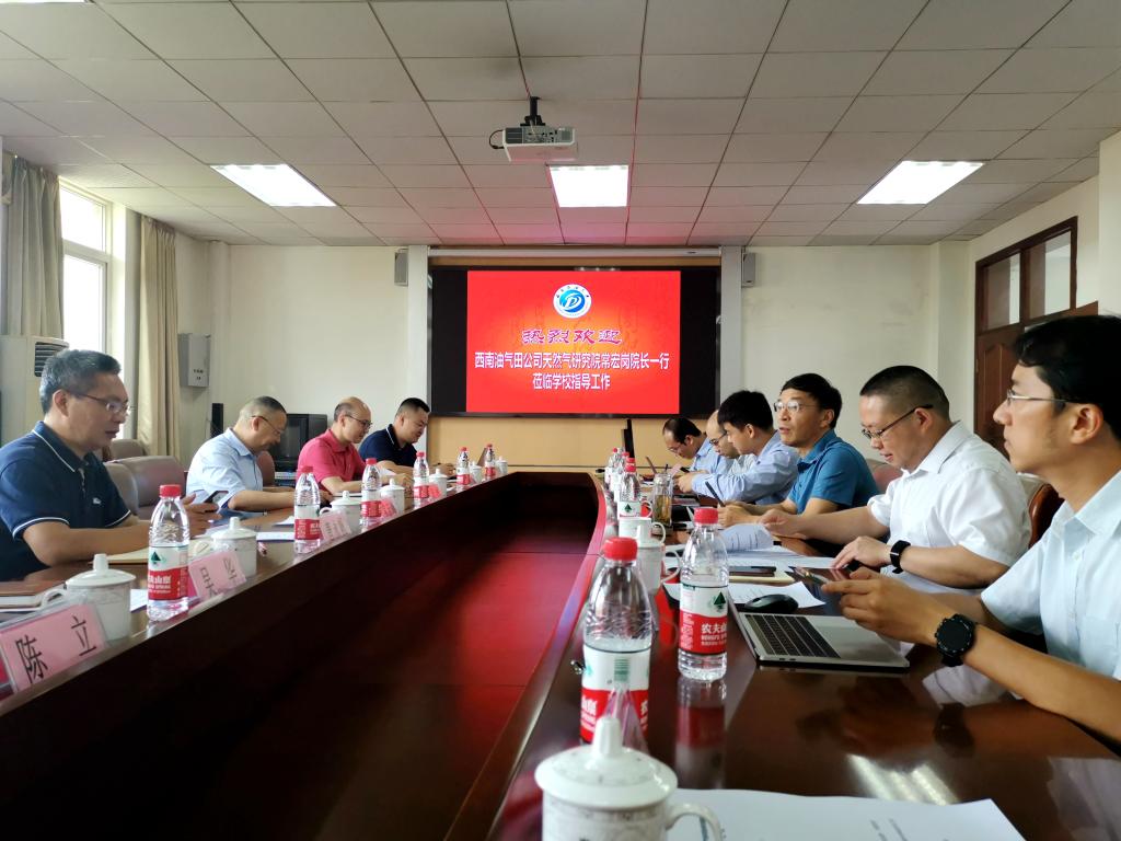 9月29日,中国石油西南油气田公司天然气研究院常宏岗院长一行来校调研新能源领域课题,党委常委、副校长张烈辉会见了常宏岗一行,双方围绕新能源领域技术产学研合作与人才培养等进行了座谈。