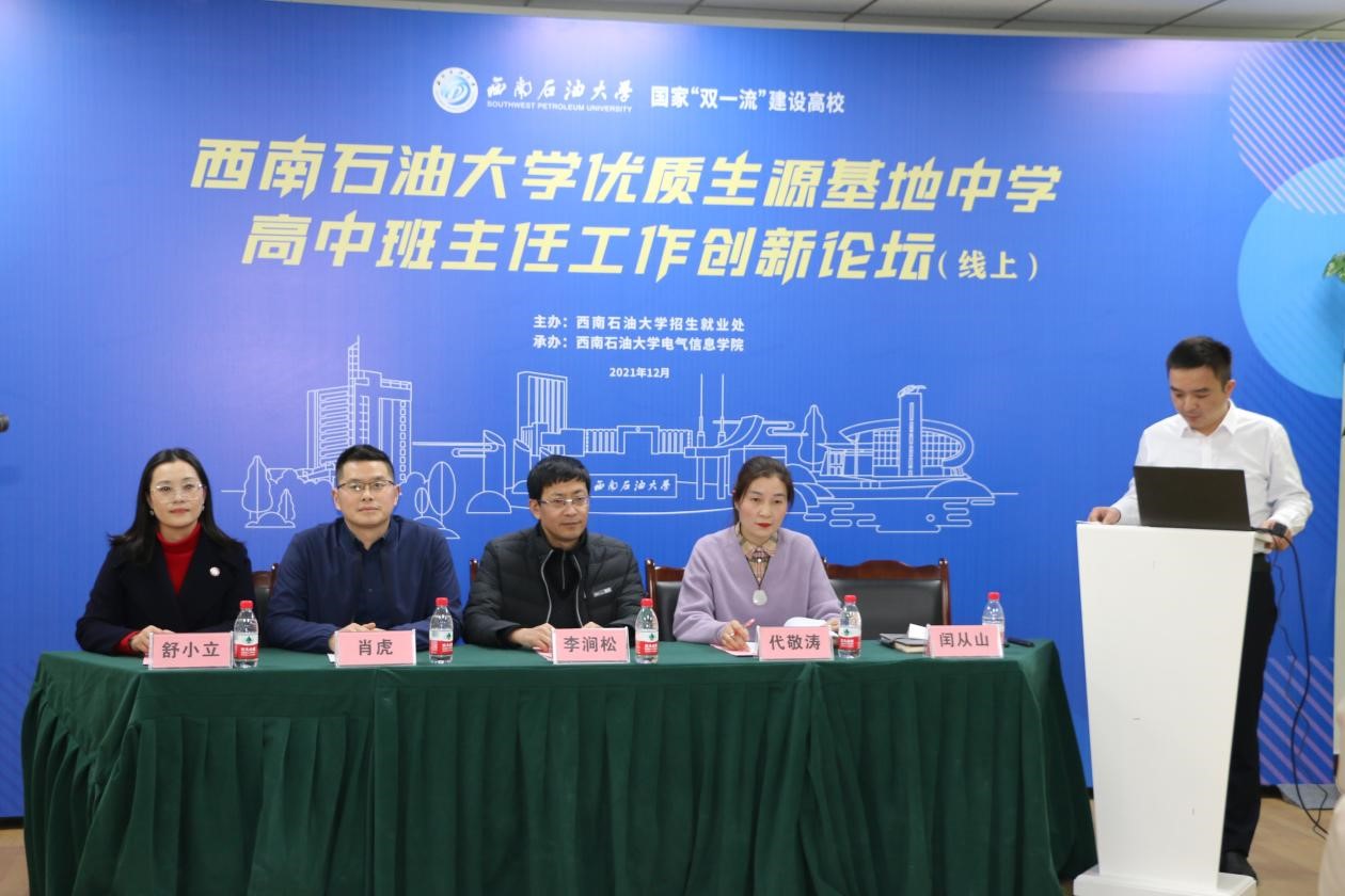 成都市新都一中副校长、中小学高级教师代敬涛、我校心理发展与服务中心主任方可、石油与天然气工程学院团委书记舒小立先后作了题为《浅谈新时代班主任专业化成长》《加强中学生心理教育,助力学生健康成长》以及《亲其师信其道》的主题报告,分别就高中班主任专业化成长的路径探索、如何加强中学生的人文关怀和心理疏导以及如何建立良好的师生关系等中学班主任较为关注的问题进行了分享交流。