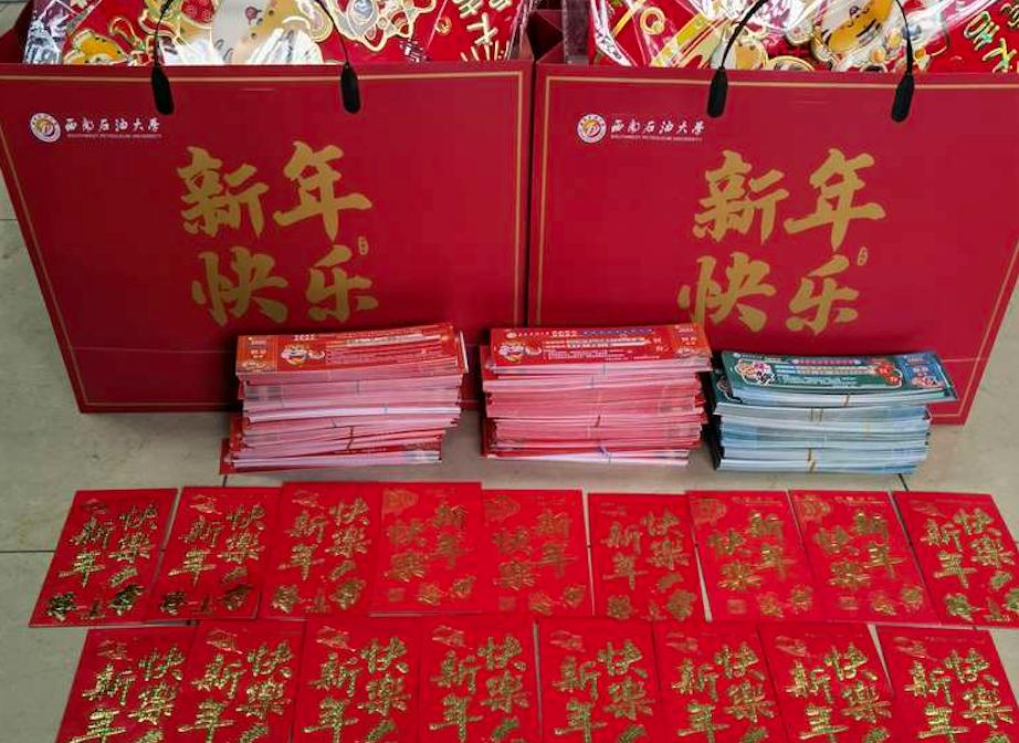 各学院领导和辅导员老师也通过深入寝室走访、开展迎新春茶话会等方式开展慰问活动,为留校学生送去了牛奶、饼干、水果等新春礼包和防疫物资。有的辅导员还把留校学生邀请到自己家里吃团年饭,共迎新春。