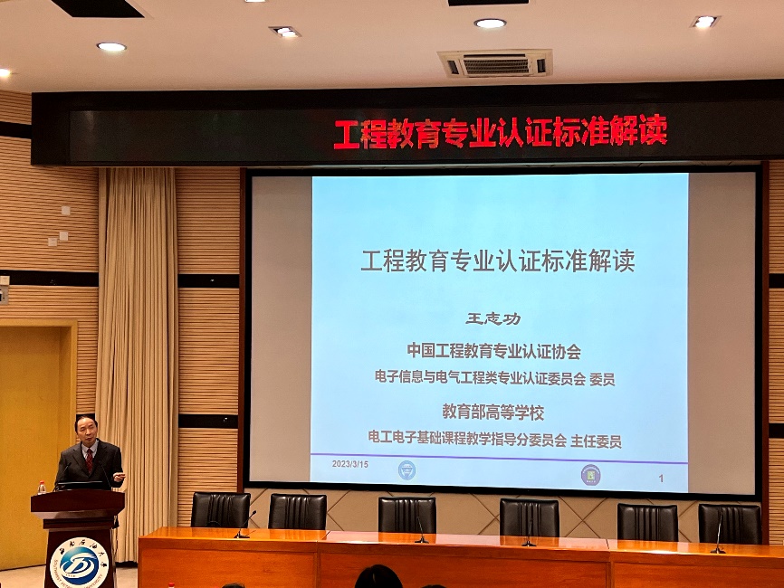 为进一步推进工程教育专业认证工作,全面领会工程教育专业认证的内涵,3月15日下午,电气信息学院邀请东南大学二级教授、博士生导师、中国工程教育专业认证协会电子信息与电气工程类专业认证委员会委员、教育部高等学校电工电子基础课程教学指导分委员会主任委员王志功教授为西南石油大学教师作了“工程教育专业认证标准解读”专题报告会。报告会由教学评估处副处长付玉主持,全校各学院教学副院长、专业负责人及电信院全体教师聆听了报告。