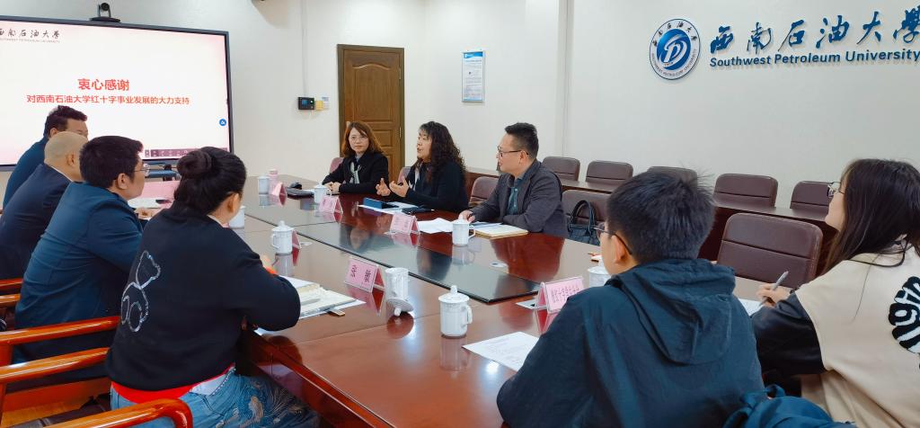 德阳红十字会党组成员、副会长兼秘书长李志刚,德阳市红十字会监事会副监事长张敏、省红十字会宣传处二级主任科员周红宁,西南石油大学红十字会副会长、校团委书记张维,校红十字会教职工代表、学生代表等参加了交流。