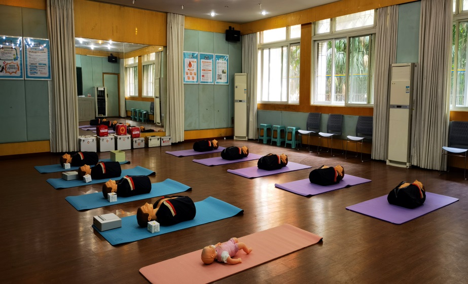 与会人员参观了我校急救站和救护训练场地,就红十字文化建设、红十字应急救护培训基地建设等方面进行了进一步交流。