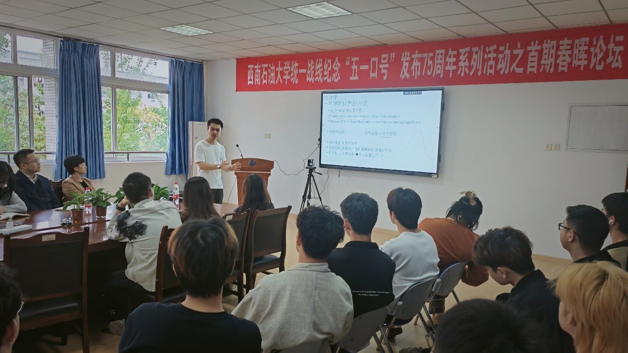 4月13日,学校党委统战部、欧美同学会(留学人员联谊会)举办了首期“春晖论坛”。新都区留学人员联谊会会长、悉尼大学统计学硕士、成都天加元劲达商贸有限公司总经理冯翰铭以“用‘统计学与新零售’理解和预测世界”为题开讲。党委统战部副部长牟卿主持。