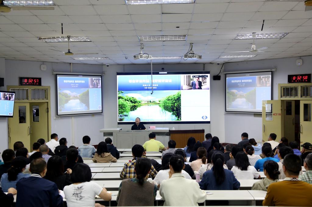 吴能表围绕评估方案概述、评估标准解析、迎评促建三个方面的内容,详细介绍了本轮教学评估的新要求、新特点,重点强调了我校参加本轮教学评估的第二类第一种评估指标中需要关注的内容,并就新体制下南充校区如何做好迎评促建相关工作提出了建议。