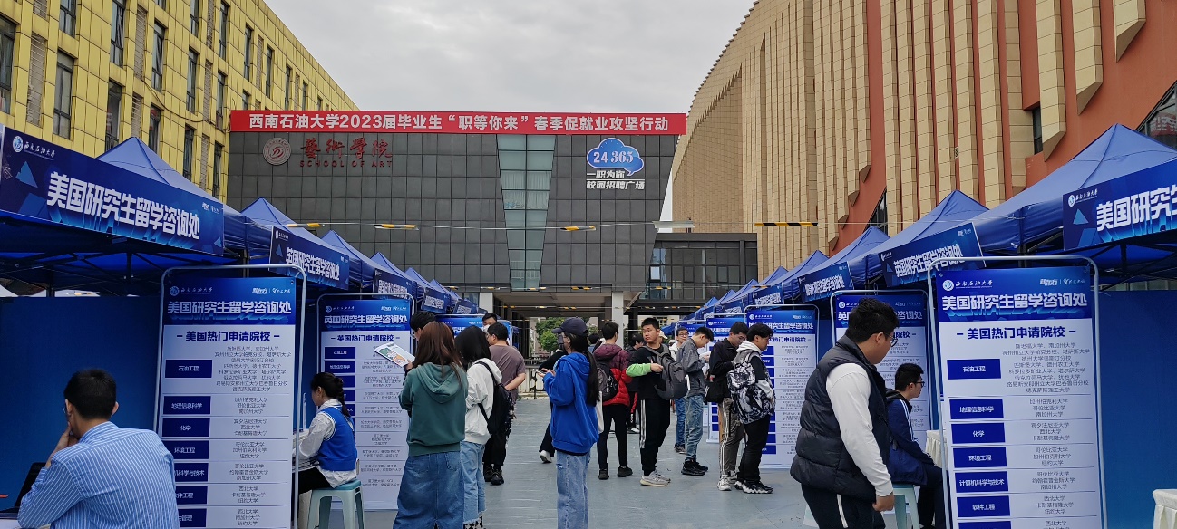 5月11号上午,学校在成都校区学生活动中心校园招聘广场举办了留学公益咨询活动,向全校15个学院的学生提供了美国、英国、加拿大、欧洲、澳大利亚、中国香港、新加坡、日本、韩国9个国家和地区90多所知名高校的留学咨询。