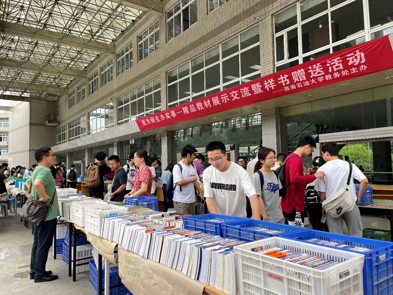为帮助教师选好教材,用好教材,5月18日,教务处举办了“书籍点亮人生,读书改变未来”主题书展活动,高等教育出版社、石油工业出版社、机械工业出版社、化学工业出版社、清华大学出版社、中国石油大学出版社等出版社和教材供应商应邀前来参展。