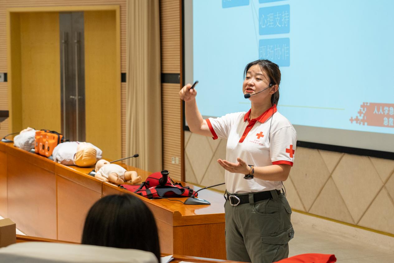 培训开始前,校医院院长张继红总结了我校在应急救护培训、应急救护比赛、救护基地建设、救护队伍发展等方面取得的成效。她表示,作为首批全国急救教育试点学校,我们将通过多种方式,不断锤炼,让更多同学在学深悟透中成为一名愿意救、敢于救、能够救的红十字救护员。