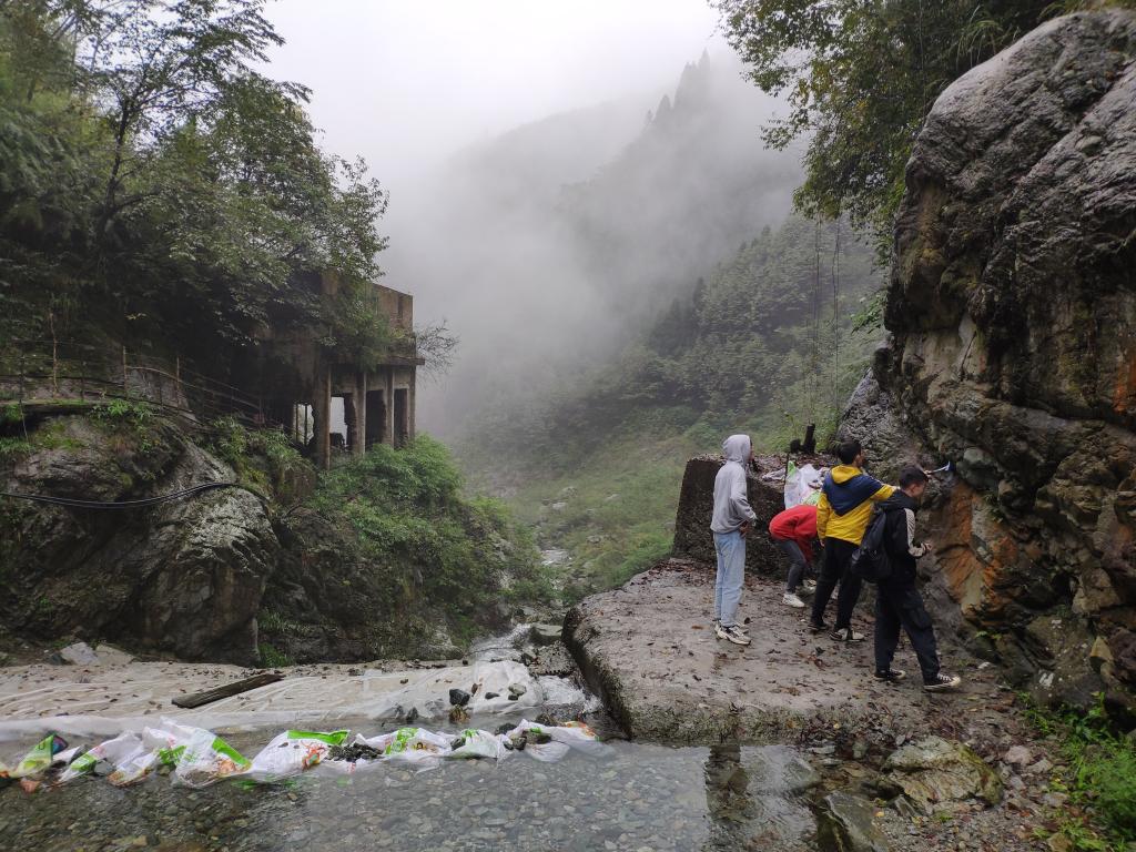 第三天到了河西洞,老师给我们讲解须家河组地层的沉积概况,之后就开始实际测量描述。3个小时后,大爷来接我们去天府镇吃饭。