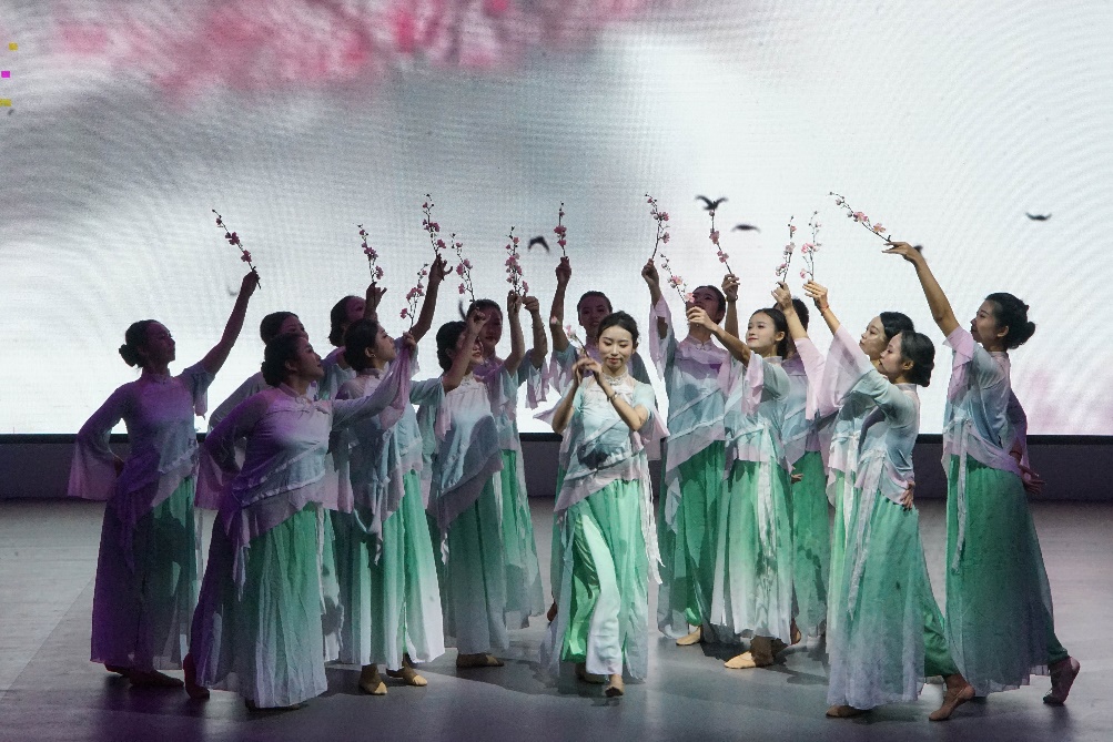 11月8日,14个学院的舞蹈代表队在飞翔广场尽情起舞。《花想容·露华浓》以“形神兼备,身心互融内外统一”的身韵,开启了此次舞蹈之旅;振奋人心的《山海》传达出跨越山海、勇往直前的追寻;《This is Me》用舞蹈诠释了“我生而不平凡”的坚定信念;《共和国之恋》以舞言情,表达对祖国深深的热爱;当科技遇上灵动舞姿,《电子律动》将电子信号化作轻盈的舞步,实现光与影的完美融合;璀璨的灯火中,《灯火里的中国》传递出中国的独特魅力;《小河淌水》以志愿军的视角展现出对和平的渴望和对新中国的无限憧憬;《水墨画卷》将古代文化的魅力与现代舞蹈融合,仿佛水墨在纸上流动、晕染;《半个世纪的等待》再现了中国共产党革命早期烈士许包野与妻子的深情故事;《史笺舞韵》似灵动的画笔在虚空之中勾勒出绝美的画卷,展现了古代女性的智慧与魅力;《汉韵思归》长袖飞扬、舞姿优雅,带领观众穿越时空回到了遥远的汉代楚地;《山河图》用激昂的舞步和坚定的眼神诠释着祖国的壮丽山河和辉煌历史;充满优雅与力量的爵士舞《佳人》让观众感受到了东方女性的美丽与智慧。