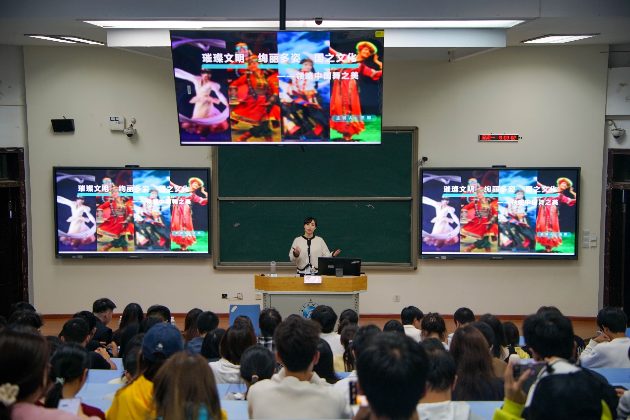 11月4日,我校艺术学院教师王娜以“璀璨文明,绚丽多姿,国之文化——领略中国舞之美”为题作舞蹈专题讲座,指出舞蹈不仅是一种艺术表达形式,更是一种文化传承和精神传递。王娜让助教在现场给同学们进行示范,让同学们体验了中国舞中小五花和踢踏舞的基本韵律,引导青年学生加深对舞蹈艺术的理解,鼓励青年学子勇敢追求梦想。