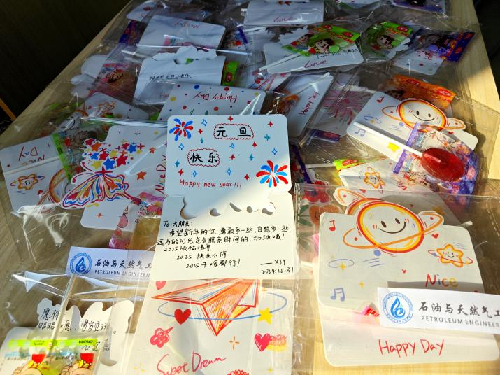 晚会还有一个特别的环节——新年贺卡交换。第一批实习队280名同学均精心准备了新年贺卡,相互传递了祝福,收获了感动和友谊,让晚会充满了温暖。