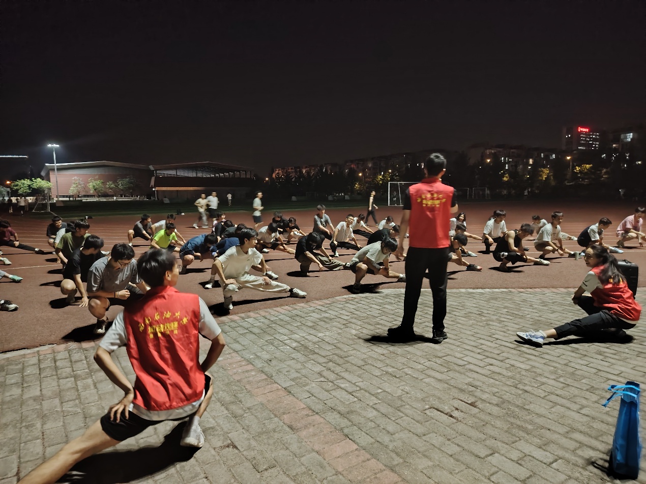 热身结束后,大家按照分组有序集合,各小组纷纷踏上跑道,开始了今晚的锻炼之旅。