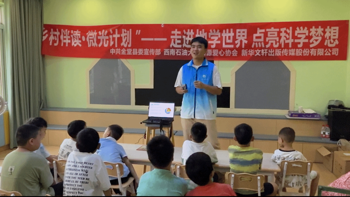 近日,成都市金堂县走进一支由西南石油大学师生组成的科普支教队伍。这支名叫“掷地有声”的科普团队来自该校知源爱心协会。团队在当地3个乡村开展了"乡村伴读·微光计划"地学科普实践活动。