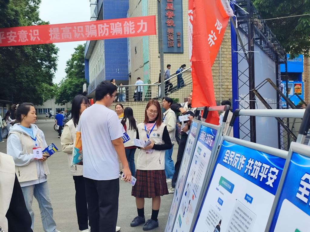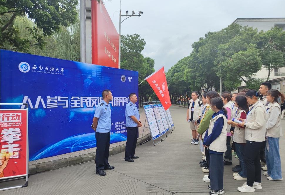 为进一步加大校园防诈骗宣传力度,普及反诈知识,增强全校师生防范各类电信网络诈骗安全意识,积极推动属地公安、反诈防骗宣讲志愿者、校内师生三方反诈防骗宣传有机联动,努力营造“人人参与,全面反诈,共筑平安”的校园反诈防骗浓郁氛围。9月25日,学校保卫处联合学工部、新都区公安分局桂林派出所,与西南石油大学反诈防骗宣讲团在学生一食堂开展了“人人参与,全面反诈,共筑平安”为主题的反诈防骗宣传活动。