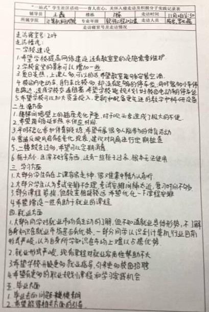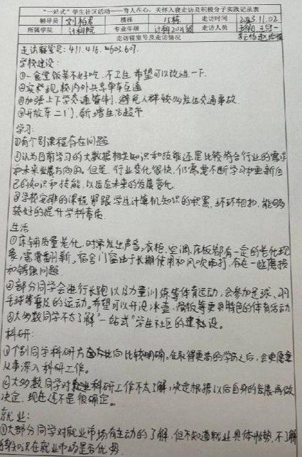 300余条同学们对学校建设发展关注和期望的建议,被记录在调研员的走访记录本上,有的现场立即解答,有的建立问题清单,及时送交相关部门跟进解决。