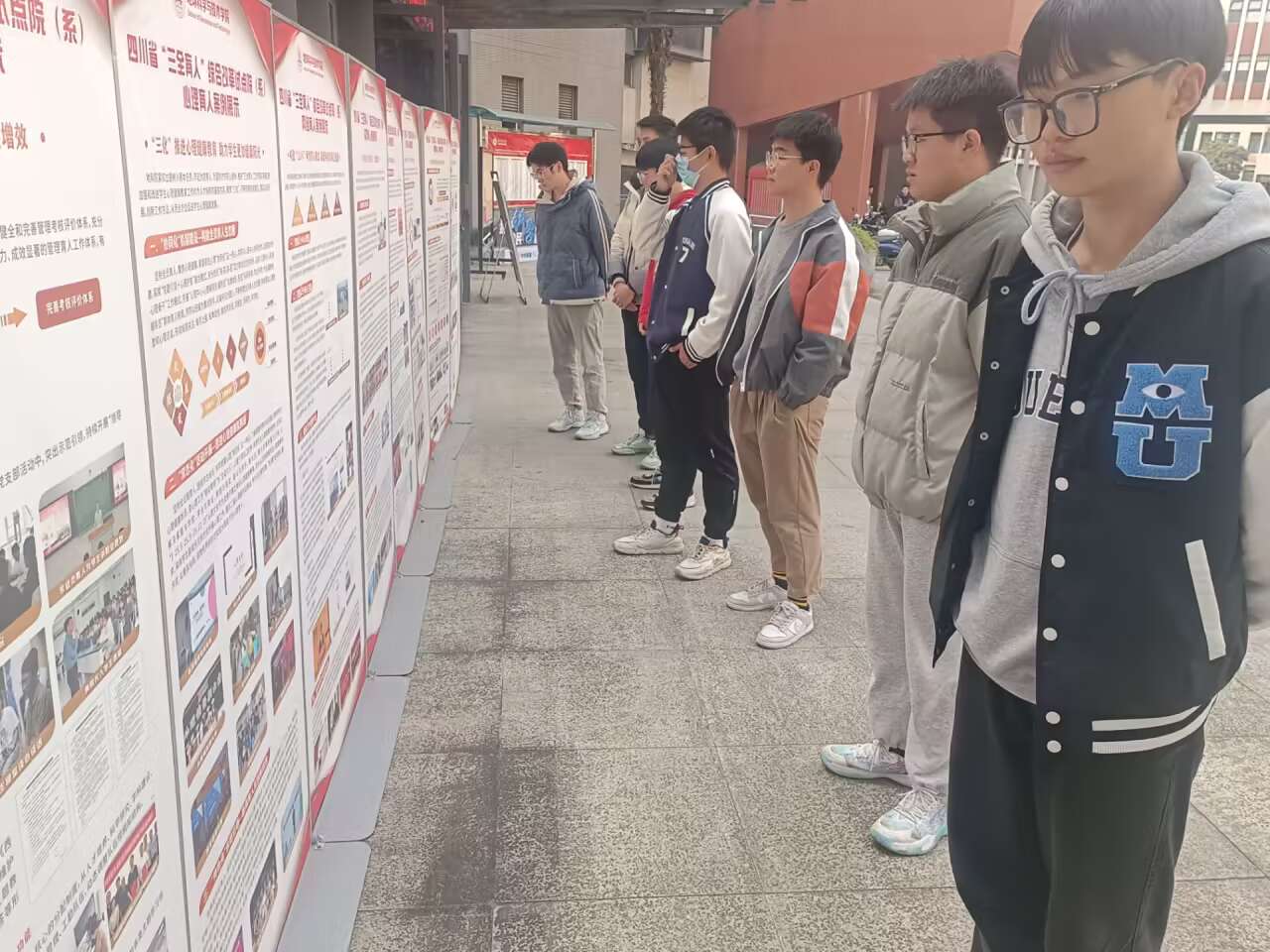11月22日以来,地科院在明辨楼A区大厅举办《构建“三全育人”大格局 唱响“立德树人”主旋律》四川省“三全育人”综合改革试点院(系)建设成果展,全面宣传展示了基础地质课程思政一体化探索,开展“科研+”行动积极推进科研育人;在行走中上好实践育人“大思政课”;弘扬地质文化、铸就地质之魂;构建“123N”网络育人模式、凝聚网络青春正能量;“三化”推进心理健康教育、助力学生更加健康阳光;“三个强化”让管理育人提质增效;打好服务组合拳、走出育人新路子;践行“三四五”工作法、实现发展型资助;“逐梦研途”党建赋能微社区等课程、科研、实践、文化、网络、心理、管理、服务、资助、组织等方面的典型做法和育人成果,反映了地科院在育人体系创新、育人活动开展、育人效能提升、育人品牌建设、工作队伍赋能等方面探索的足迹,多层次、多维度展示了将“三全育人”工作融入人才培养全过程的生动实践。活动吸引了广大地科师生参观学习,激发了地科师生对学院“三全育人”成效的热烈讨论,营造了“全员、全过程、全方位”育人的良好氛围。