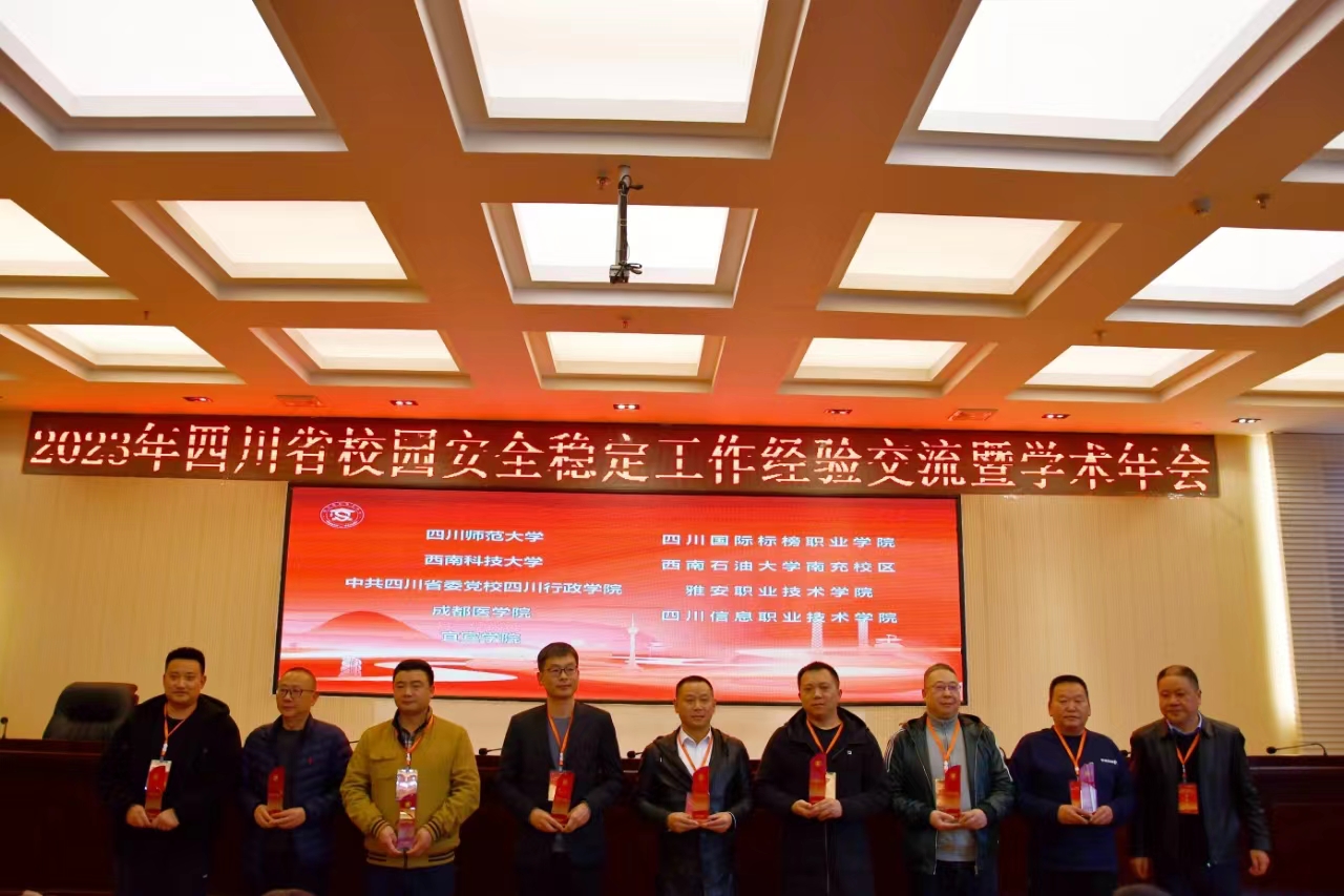 12月6日-8日,2023年度四川省校园安全稳定工作经验交流暨学术年会在西昌召开,会议对2023年度全省高校“平安校园”建设先进单位、先进个人进行了表彰。南充校区荣获2023年度四川省高等院校安全保卫工作“平安校园”先进单位称号,安全与后勤保障部何睿同志获得“四川省高校平安校园建设保卫干部先进个人”,胡云国、蓝嘉勇两位同志获得“四川省高校平安校园建设优秀安保个人”,贾柠旭、刘杰两位同学获得“四川省高校平安校园建设学生先进个人”。