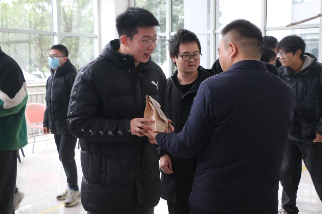 为缓解考研学子复习压力,为他们加油鼓劲,12月20日上午,电气信息学院党委副书记、纪委书记闰从山,副院长汪敏及2020级毕业班辅导员们在明理楼C区大厅,为考研学子送上礼物和祝福。