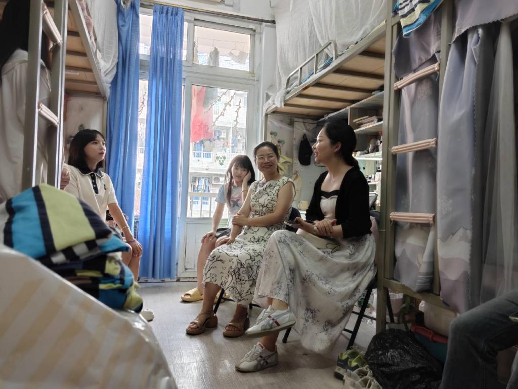 走访中,学院领导详细询问了每位毕业生的就业深造去向、职业规划等信息,倾听毕业生的个人愿景与困惑,提供了职业规划、技能提升、心理调适等多维度的指导建议。同时,对已经落实毕业去向的同学表示祝贺,希望毕业生们秉承终身学习的观念,在未来生涯中持续探索,不懈追求,学以致用,在自己的岗位上大展宏图。辅导员老师也对毕业生们提出倡议,引导同学们遵守宿舍管理规定,文明离校。
