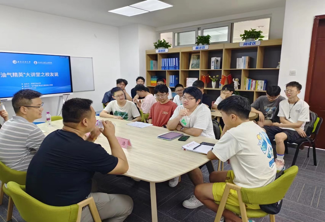 在现场自由提问环节,同学们踊跃发言,积极提问,两位校友以自身丰富的经验阅历,针对同学们对未来的期待和迷茫一一解答,现场气氛和谐融洽。参与交流的石油工程2021级何俊龙表示,很高兴有机会能和学长们面对面交流,通过本次交流,不仅加深了对油田一线工作的认识,也更加坚定了以后的发展方向。