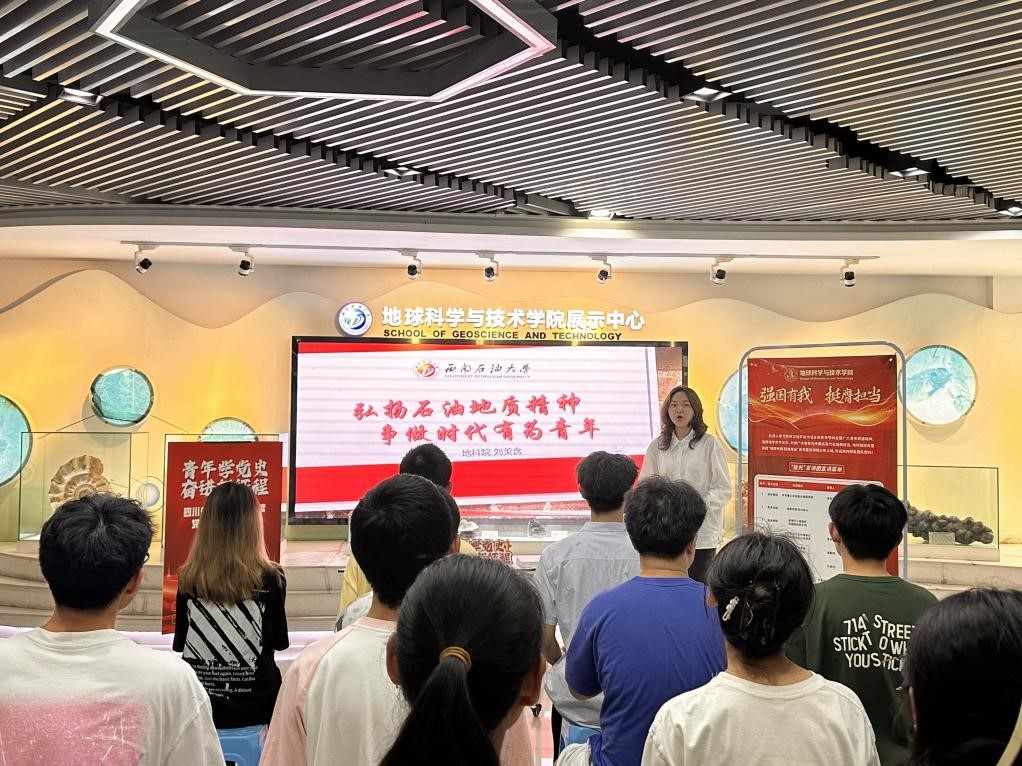 为深入学习宣传贯彻党的二十大精神,扎实推进“青年学党史·奋进新征程”有声阅读党史作品展播活动,6月20日下午,地科院“拾光”宣讲团在明辨楼A区展厅组织召开“聆听党史之声,弘扬地质精神”主题团日活动。地科院“拾光”宣讲团3名成员参与宣讲,勘查技术与工程专业2022级30位团员代表参加本次活动,活动由宣讲团团长、地科院兼职辅导员李佳芮主持。
