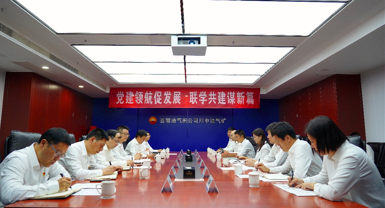 化学化工学院班子成员、党委组织员、院团委、油气田应用化学省重点实验室党支部、师生支部书记代表,川中油气矿办公室(党委办公室)、人力资源部、党委组织部、净化管理部、磨溪天然气净化厂、党群工作部、矿团委、磨溪开发项目部龙王庙总站党支部、遂宁采油气作业区磨溪党支部相关负责同志参加了本次联学共建活动。