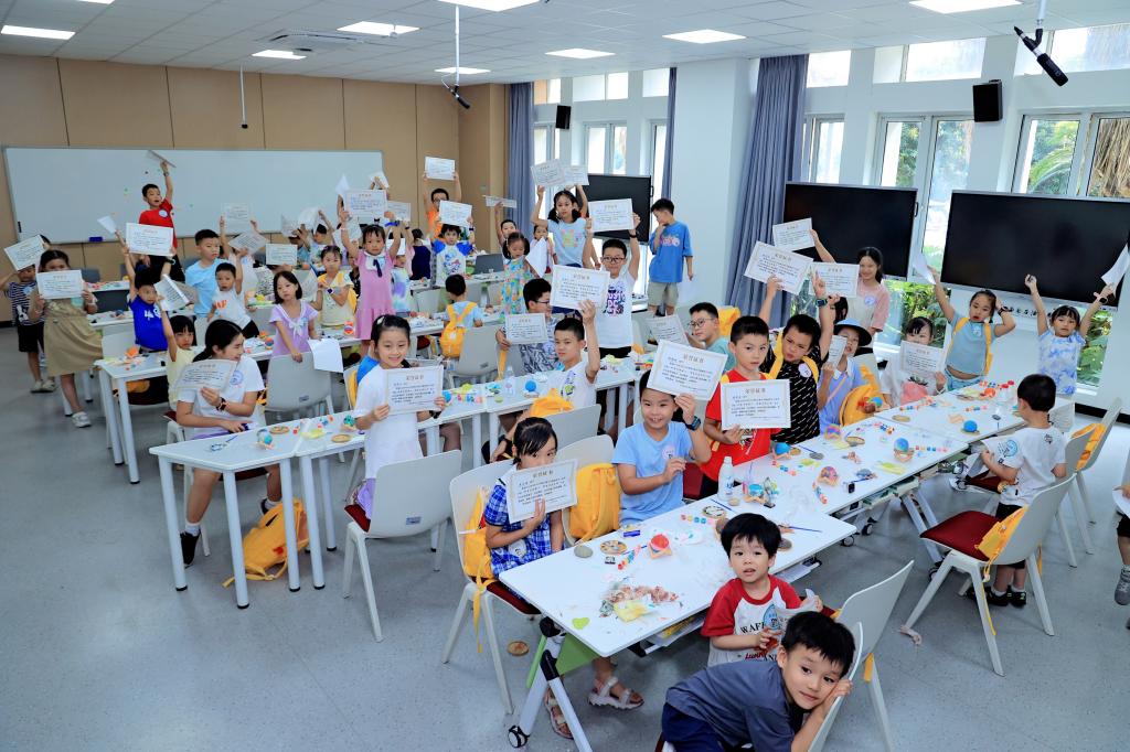 科学实践活动采用“科学知识普及+动手实践体验”的模式,通过一系列互动性强、寓教于乐的科普环节,提高了孩子们的动手动脑能力,鼓励他们主动观察科学现象,激发他们学科学、爱科学、用科学的热情。研学活动现场呈现出积极向上的活泼氛围,孩子们相互展示在科学实践中的作品,脸上都洋溢着开心的笑容。