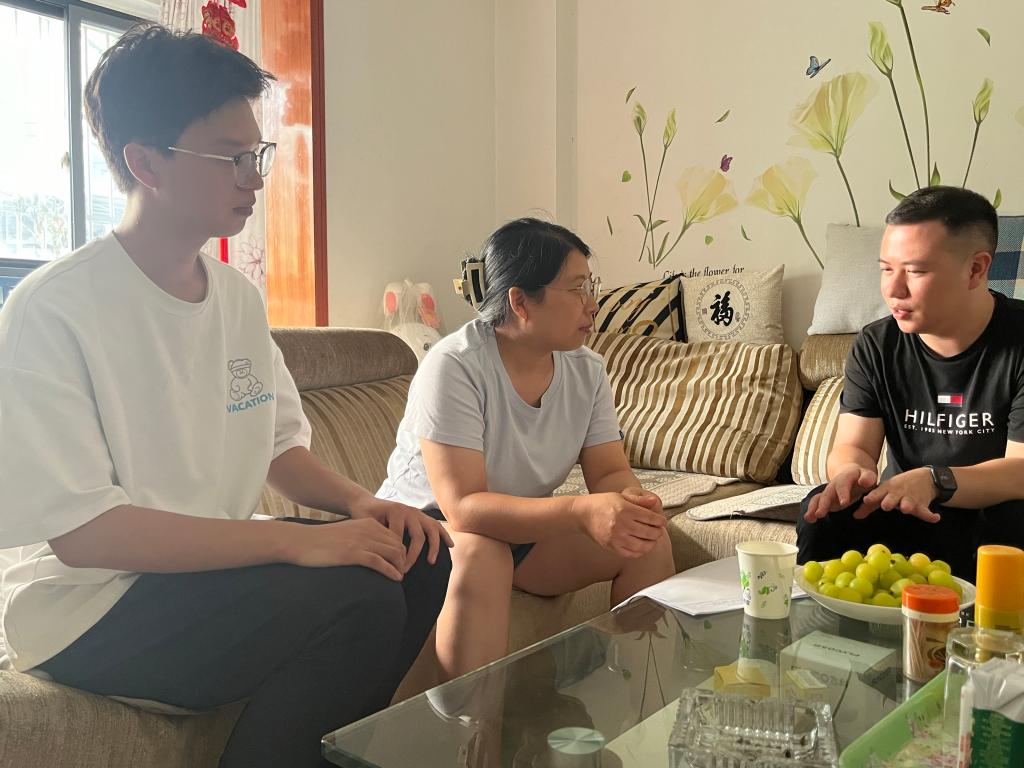 “目前的考研复习进展如何?遇到什么困难了吗?”在四川成都,2021级辅导员黄爽与兼职辅导员郑超前往学生小曾的家中,深入了解他的备考情况。郑超向小曾的母亲反馈了他的在校表现,针对他的学习成绩,提供了个性化的建议。黄爽则与小曾的母亲讨论了学生的职业发展规划,分析了当前毕业班的考研和就业形势,建议小曾在考研和就业方面双管齐下,充分把握毕业前的关键时机。
